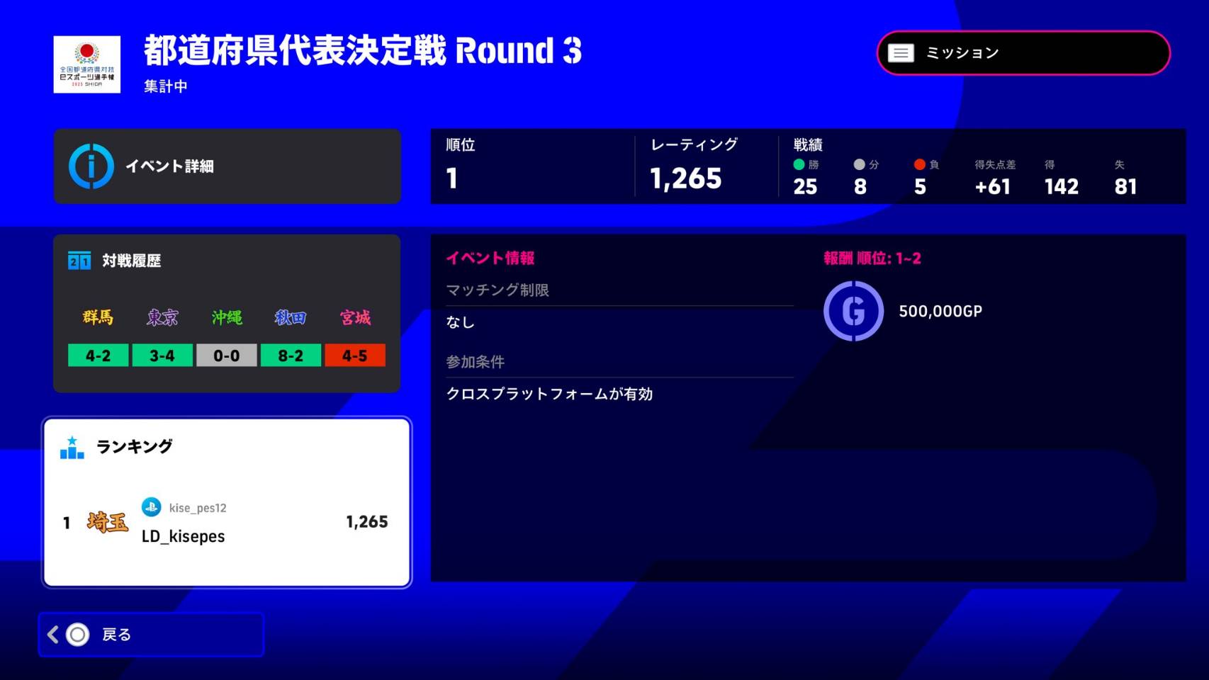 LIMIT DESTROY所属のキセペス選手が、全国eスポーツ選手権2025 SHIGA・eフットボール部門の埼玉県予選ラウンド3にて見事第1位を獲得しました。これにより、県代表決定戦へ進出することが決定しました。